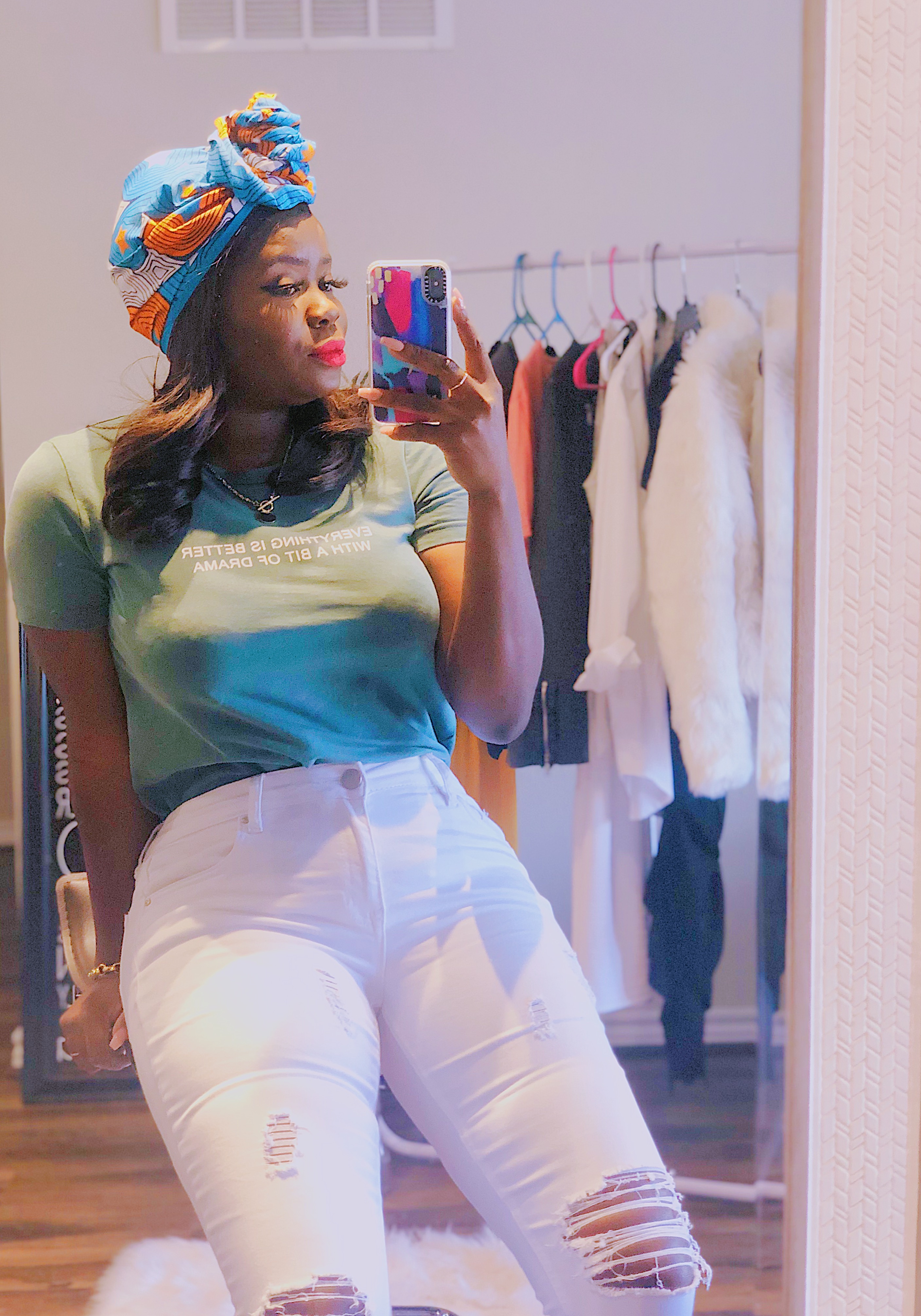 As I mentioned in my last post, you can rock the african head tie with any outfit. It is all about Zara today, love this simple t-shirt on a white jeans. Enjoy your Sunday guys, XOXO…